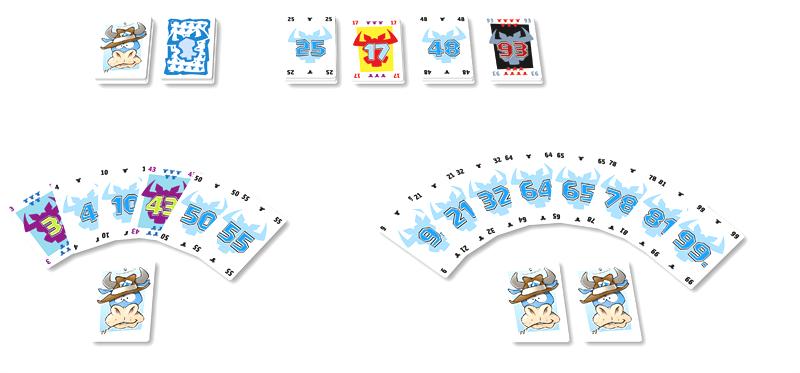 Many readers may have heard of the classic filler 6 Nimmt! (sometimes called Category 5 or Take 6), well 11 Nimtt is designed by the same designer and part of the Nimtt family of games. However, I will say that I enjoy 11 Nimtt much better that it’s classic big brother, 6 Nimtt. Cards are numbered 1-100 and have different numbers of oxen heads (which are bad and you don’t want to be stuck with). Players stack cards in a single pile by playing a card that is no more than 10 points higher than the card currently on top of the playing pile.. If you can’t (or don’t want to) play – you have to pick up the pile and then start two piles! So piles will grow in the game (but so can your hand), giving you more options. However, the twist is any time you take a stack with 3 or more cards you can get a bull card – which allows you play an extra card from your hand, the more bulls you have, the more cards you can play. The object is the first one to get rid of all of their cards. All other players take minus points for each oxen head that appears on the cards they are left holding and a new round starts. You play the number of rounds as there are players in the game – winner is the one with the least amount of minus points. Note if you do get a copy of this game, you will need to print out a copy of the English rules from Board Game Geek.