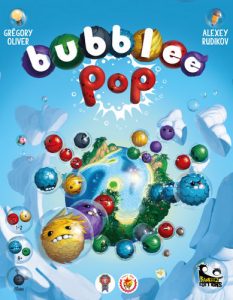Bubblee Pop is 2-player game out of France, that is best described as an analog version of a head-to-head match 3 games that would expect on your smartphone. On a player’s turn, they will pick two, “bubblees” from the center of the board to fall from the sky in a straight line, you then look to see if you have 3 in a row/column of the same color that are lined up – if so – they “pop” (taken off board for scoring later). The twist here is that each color has its own power, to either allow you to manipulate your side of the board or to cause trouble for your opponent. Play goes until a player reached the top and cannot play a bubble or if all the bubblees are gone from the draw bag. If you like games were your go head-to-head and enjoy the match 3 genre, this is a great analog version of that, and ended up being one our favorite new releases we played in 2016. There is also solo player challenges in the rulebook, though I haven’t tried any of them.