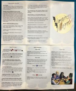 A player’s turn is done in phases. First, a player simply draws a card from the deck. Villagers drawn are added to the village immediately, otherwise the player keeps her card and adds it to her hand. Some of the cards she may draw are hunters, thralls, or vampires. Hunters and thralls help with attacking and may have special abilities. Vampires may have special abilities, and are mostly kept hidden or in hand to prevent opponents from successfully attacking them before they may be scored. Vampires can die too, y’know…