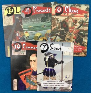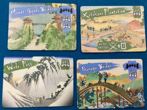 Becoming a Shogun is no easy feat. To be the best, you have to show your worth, and what’s worth more than land and bridges in the early 1600s? In Martial Art, you are fighting your opponents for claim to the lands and bridges. Each land and bridge is worth points, and the first to twelve land points (or three bridge cards) wins Martial Art.