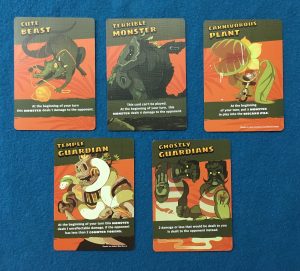 I received a final version of Terrible Monster. The rules were very easy to understand. I was also sent an expansion, the Desperation Expansion, which brings some more spells and monsters to the game, as well as hero cards, which provide the player who possesses it a bonus ability. Both the expansion and the core game were easy to read through and understand.