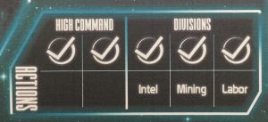 - Two of these four actions known as High Command actions may be taken (even the same action twice)