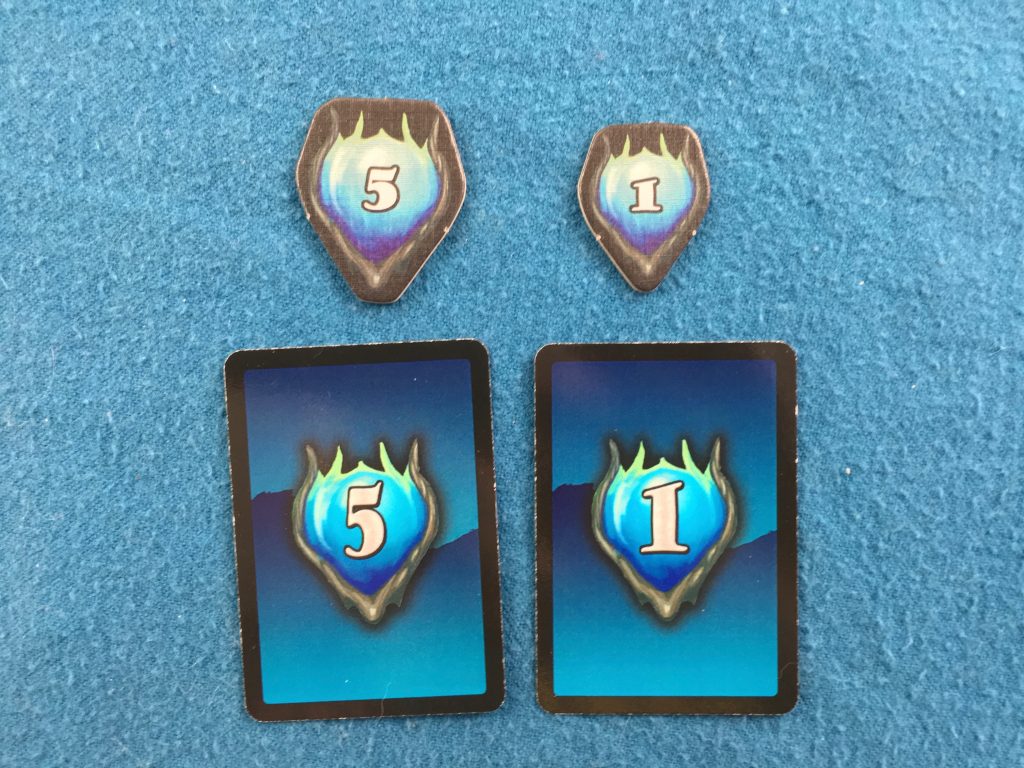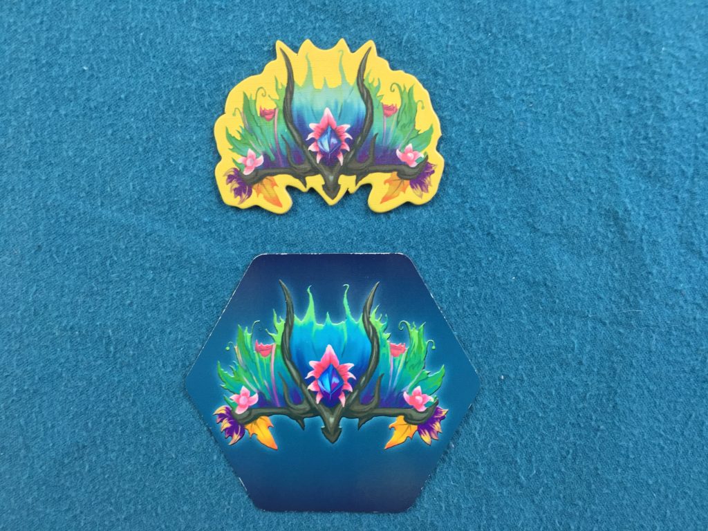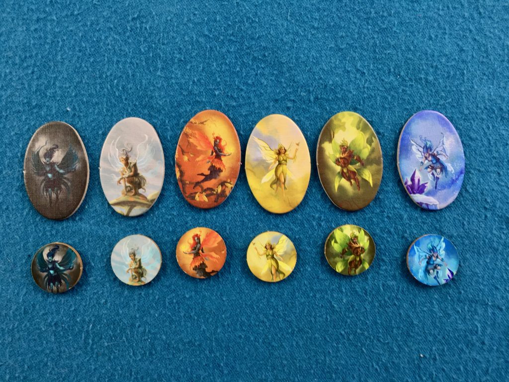 The fae tokens are no longer glossy punchboard either but are larger, oval-shaped matte punchboard tokens.