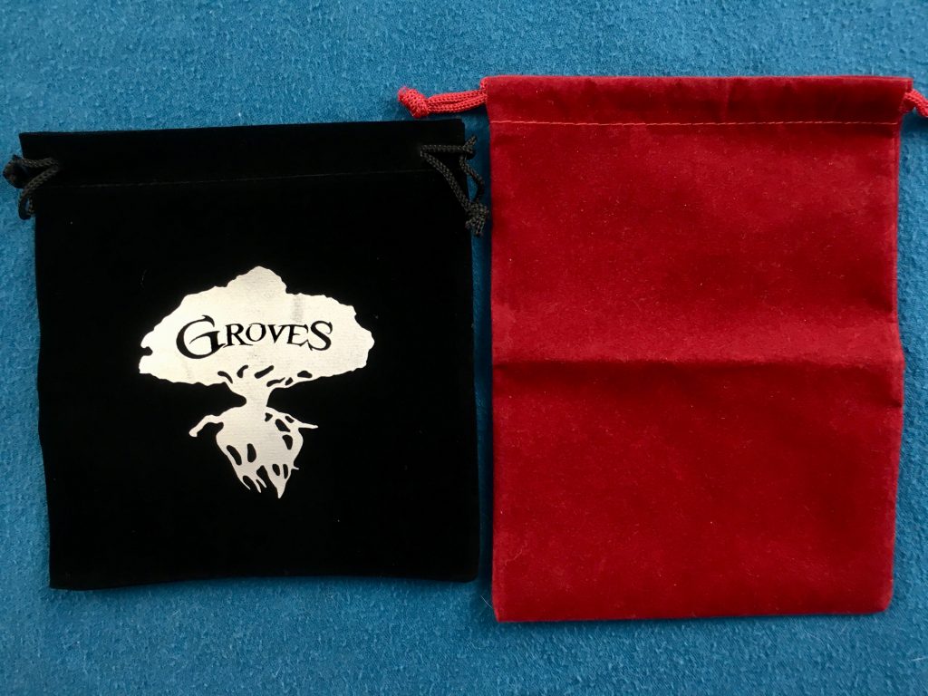 The summoning bags used to be basic colors, but are now screen-printed with the Groves logo and the Tree of Idyll.