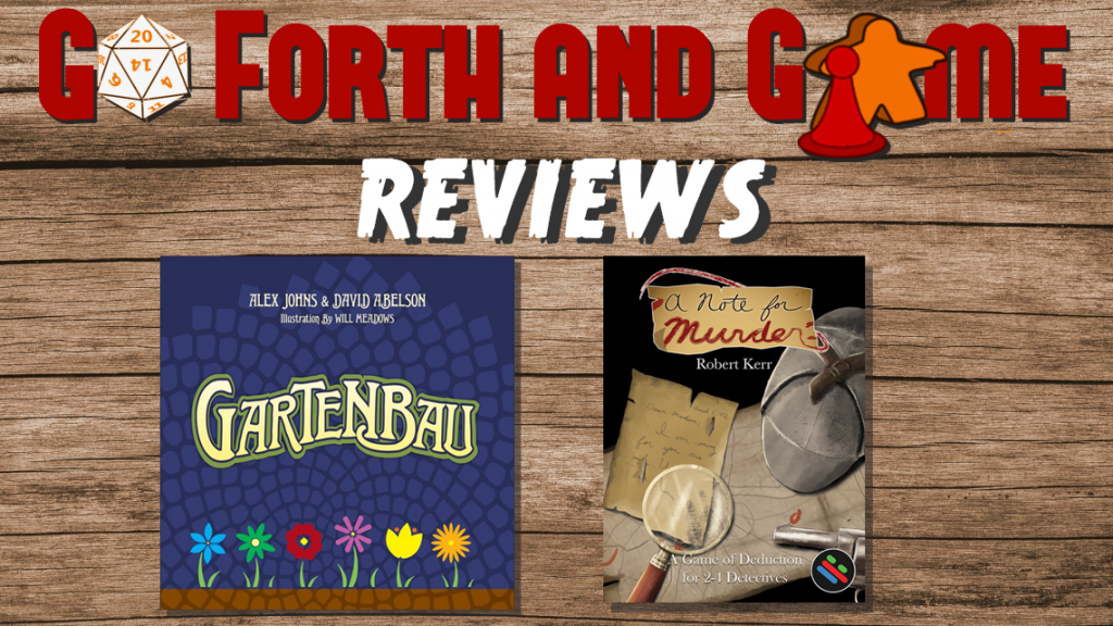 In this show we give out thoughts about two games – Gartenbau by Fisher Heaton Games and A Note For Murder by Puzzling Pixel Games. We hope you enjoy the show.