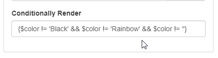 This conditionally render syntax basically says, use this Art Color Layer if the spreadsheet’s Color isn’t “Black” or “Rainbow” or Blank. In other words, use it for all the standard colors.