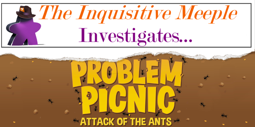 The Inquisitive Meeple investigates Kid’s Table BG’s Problem Picnic. A set collecting, dice dexterity game, designed by Scott Almes that is for for 2-4 players.